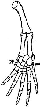 Рис. 14.14. Строение развивающейся конечности позвоночного: рр — prepollex, pin — postminimus — дополнительные рудиментарные I и VII пальцы