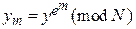 Строим последовательность: Пример 7. Пусть у нас имеется открытый ключ N =84517, e = 397 и зашифрованное им сообщение y = 8646. Необходимо найти исходный текст x. Возведем y в степень e и получим y 2 = 37043. Будем повторять операцию до тех пор, пока не получим yn = y. yn -1 – искомое сообщение: y 3 = 5569, y 4 = 61833, Замечание. Анализ метода повторного шифрования хорошо показывает необходимость соблюдения требований на выбор p и q для обеспечения стойкости. В данном примере d = 82 225. Неудачный выбор криптосистемы привел к тому, что атака методом повторного шифрования дала результат почти сразу, тогда как нахождение d потребовало бы на порядок больших вычислений.