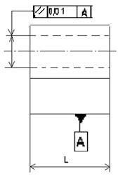 Рис 13. (в двух точках на заданной длине поверхности) Отклонение определяется как разность показаний головки на заданном интервале друг от друга (головки на «0» выставляются по эталону). Допуск параллельности оси отверстия относительно базовой плоскости А на длине L.