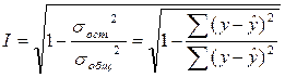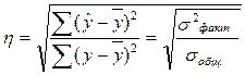 Расчетные значения t - критерия Стьюдента определится: tрасч.= Далее сравнение расчетной величины с табличным значением t - критерия осуществляется аналогично вышеописанному. Коэффициент корреляции точно оценивает степень тесноты связи лишь в случае наличия линейной связи между признаками. Если имеет мести криволинейная зависимость, то используется эмпирическое корреляционное отношение или индекс корреляции для оценки степени тесноты связи между признаками. Корреляционное отношение определяется по формуле: