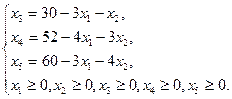 Приведем задачу к каноническому виду, введя новые неотрицательные переменные х3, х4, х5, значения которых равны соответственно остаткам сырья первого, второго и третьего видов.