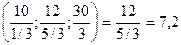 Второе базисное решение Б2: (10; 0; 0; 12; 30), значение целевой функции при этом решении f2=6·10+3·0=60. Полученное решение не является оптимальным, т. к. f- строка второй симплекс-таблицы имеет отрицательный элемент, поэтому переходим к следующей симплекс-таблице, считая соответствующий столбец ключевым. Так как min