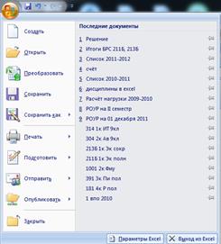 Для решения этой задачи необходимо воспользоваться надстройкой Поиск решения, которая находится на вкладке Данные в разделе Анализ. Если эта надстройка отсутствует её необходимо установить следующим образом: в верхнем левом углу Excel нажимаем на кнопку Office и в нижней части появившегося окна (рис. 3) выбираем кнопку Параметры Excel.