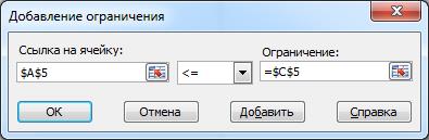 В разделе Ограничения нажимаем на кнопку Добавить и в диалоговом окне (рис. 11) вводим соответствующие значения (рис. 12).