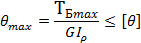 Біліктің қ атаң дық шарты, оның кө лденең қ имасындағ ы ең ү лкен салыстырмалы бұ ралу бұ рышы бойынша былайша жазылады: