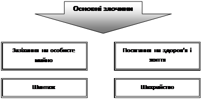 Проституція – вступ людей у безладні статеві стосунки за матеріальну винагороду. Інцест – сексуальні або насильницькі дії з боку родичів. Насильство, ґвалтування стається за умови існування чотирьох чинників: місце – частина простору, яка сприяє ситуації (відлюдні місця, темні провулки, ліфти, дачі тощо); агресор – люди зі специфічним світоглядом; це, як правило, люди з психопатологічними, біологічними, психосамотичними відхиленнями, нестійкою психікою; жертва ‑ людина, яка своєю присутністю, індивідуальними особливостями вербально і невербально, свідомо чи несвідомо провокує агресію; обставини – чинники, що провокують неконтрольовану небезпечну поведінку, загострюють і оголюють інстинкти. Крадіжка – таємне заволодіння чужим майном. Грабіж – відкрите заволодіння чужим майном із насильством чи без нього, небезпечне для життя та здоров’я потерпілого. Шантаж – [фр. chantage, лат. cantаre ‑ вимагання]. Погроза розголошення компрометуючих відомостей із метою одержання певних вигод. Розбій – напад із метою заволодіння майном, поєднаний із насильством, небезпечним для життя і здоров’я жертви, або загрозою такого насильства. Шахрайство – заволодіння особистим майном громадян або придбання права власності шляхом обману чи зловживання довірою. Засоби самозахисту: найдоступнішими засобами самозахисту, для яких не потрібний спеціальний дозвіл, є: ‑ газові балончики (аерозольні); ‑ кишенькова сирена; засобами самозахисту, на носіння яких потрібно мати дозвіл правоохоронних органів, є: ‑ холодна зброя; ‑ газовий пістолет; ‑ вогнепальна зброя. Кожний засіб захисту має вимоги щодо зберігання і використання. Наприклад, щоб попередити неприємності з газовими балончиками, необхідно дотримуватися таких правил: 1. Зберігати їх у спеціальному місці, недосяжному для сторонніх, дітей, домашніх тварин. 2. Дотримуватися терміну й умов зберігання (не нагрівати, не розбирати, не деформувати корпус). 3. Зберігати в такому положенні, в якому балончик буде доступним для екстреного використання (у зручному місці, на рівні робочого положення руки тощо). 4. Уміти користуватися газовим балончиком, навчитися швидко його діставати (потренуватися виймати його і розпилювати вміст). 5. Пам'ятати про власну безпеку під час користування балончиком (вчасно набрати повітря і не дихати). Суїцид – самовбивство, самогубство, акт позбавлення себе життя, при якому людина діє цілеспрямовано, усвідомлено. Алкоголізм – страшна хвороба, яка виникає внаслідок неодноразового прийняття алкоголю та виникнення залежності від нього. Через надмірне вживання алкоголю в Україні стається 20% побутового, 46% вуличного травматизму та 72, 5% дорожньо-транспортних пригод. Наркоманія – захворювання, що характеризується наркозалежністю, при цьому вражаються внутрішні органи, виникають неврологічні та психічні розлади, настає виснаження організму. Деструктивний культ – це релігійна або містична організація, діяльність якої супроводжується порушенням громадської безпеки та порядку, ушкодженням здоров’я і моральності населення. Тоталітарний культ – це релігійна або містична організація, яка характеризується необмеженою владою духовних лідерів, жорстокою дисципліною, сильним впливом на психіку адептів, релігійним фанатизмом та екстремізмом. Апокаліптичні культи – різновид то