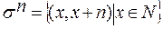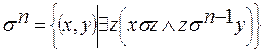 Dros={xï xÎ N Ù x+1=y2}={3, 8, 15, 24,...}. В случае, когда отношение задано на множестве, оно может быть скомбинировано с самим собой: sos = s2 = {(x, x+2)½ xÎ N } и ror = r2 = {(x4, x)½ xÎ N }. Используя это обозначение, можно определить энную степень отношения: