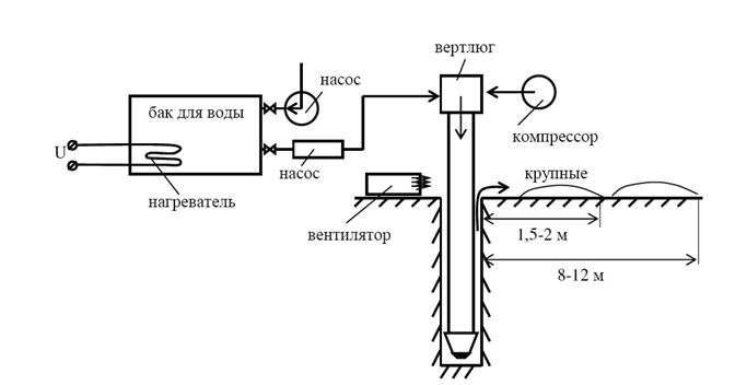 Для очистки забоя скважины от продуктов разрушения и снижения загрязнения окружающей среды, создания нормальных санитарно-гигиенических условий труда при бурении используется водо-воздушная смесь.