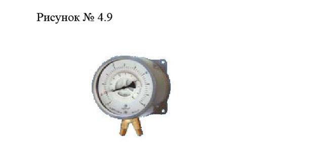 Дифференциальный манометр МДП4-СМ-Т. Предназначен для одновременного измерения в двух различных точках системы избыточного и вакуумметрического давления аммиака с маслом, хладонов 12, 22 с маслом, для отсчета разности давлений в этих точках, а также для работы в холодильных установках, монтируемых на судах. независящих друг от друга, две манометрические пружины, два радиальных штуцера и два циферблата, один из которых вращающийся. Отсчет разности давлений в двух источниках отсчитывается непосредственно по шкале подвижного циферблата.