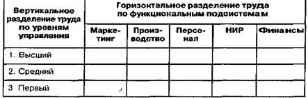 Важным фактором повышения результативности менеджмента является разделение труда менеджеров, т.е. специализация управленческих работников на выполнении определенных видов деятельности (функций), разграничение их полномочий, прав и сфер ответственности. Соответственно этому в организациях выделяют следующие виды разделения труда профессиональных управляющих: функциональное, структурное, технологическое, профессионально-квалификационное. Функциональное разделение труда основывается на формировании групп работников управления, выполняющих одинаковые общие функции менеджмента. Соответственно этому одни работники аппарата управления специализируются на работах по планированию, другие направляют свои усилия на организацию работ по выполнению планов, третьи являются специалистами по контролю хода, измерению результата и оценке работы и т.д. Наряду с этим функциональное разделение труда предполагает выделение из общего состава менеджеров специалистов, которые отвечают за процесс управления в целом, а не за какую-то одну функцию. Этих менеджеров называют общими (англ. general manager) и их главная задача состоит в обеспечении целостности функционирования организации. Поэтому общий менеджер — это руководитель предприятия в целом или руководители отдельных частей предприятия, осуществляющие интеграцию работы функциональных менеджеров и специалистов. В их задачи входят: выработка видения будущего, т.е. картины того, какой должна быть организация в перспективе и как этого можно достичь; развитие потенциала организации и людей, работающих в ней; принятие необходимых действий для достижения поставленных целей. Структурное разделение труда строится исходя из таких характеристик управляемого объекта, как организационная структура, масштабы, сферы деятельности, отраслевая или территориальная специфика. В силу большого разнообразия факторов, воздействующих на структурное разделение труда, оно специфично для каждой организации. В то же время можно выделить некоторые общие черты специализации, касающиеся прежде всего вертикального и горизонтального разделения труда менеджеров. Вертикальное разделение труда построено на выделении трех уровней управления — низового (первого, или менеджмента передовой линии), среднего и высшего. К низовому уровню относятся менеджеры, имеющие в своем подчинении работников преимущественно исполнительского труда. Они осуществляют управление такими первичными подразделениями, как бригады, смены, участки. Средний уровень включает менеджеров, ответственных за ход производственного процесса в подразделениях, которые состоят из нескольких первичных образований (структурных единиц); сюда входят также менеджеры штабных и функциональных служб аппарата управления предприятия, его филиалов и отделений, а также руководство вспомогательных и обслуживающих производств, целевых программ и проектов. Высший уровень — это администрация предприятия, осуществляющая общее стратегическое руководство организацией в целом, ее функциональными производственно-хозяйственными комплексами. Фактическое число уровней на предприятиях характеризуется большим разнообразием и колеблется от одного—двух на малых предприятиях до восьми—десяти в крупных объединениях и корпорациях. Соответственно мен