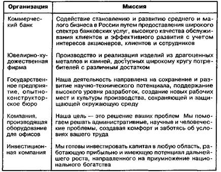 Рис. 1.7. Взаимосвязь между планами организации Характер взаимосвязи между планами организации показывает, что основу всей системы должны составлять стратегические планы. Поэтому стратегическое планирование является предметом активной разработки современного менеджмента. Роль стратегических планов для развития экономики нашей страны особенно велика в связи с проводимой перестройкой. Кризис и жесткие рыночные условия заставили руководителей многих российских компаний посмотреть на свою работу как бы со стороны и осознать те недостатки, которым раньше не придавалось особого значения. Результатом стало обоснованное внимание к составлению планов стратегического развития и разработке методов их реализации. 1.4.2. Цели организации Постановка целей является важнейшим исходным моментом процесса управления Организация — это сложная многоцелевая система, тесно связанная с окружающим миром и оказывающая на него всестороннее воздействие. Управление такой системой требует определения: всей совокупности целей и задач, которые она должна решать в своей повседневной деятельности; ассортимента продукции и услуг, какие она будет производить, и рынков, которые будет обслуживать; необходимых ресурсов для реализации запланированных целей и способов их достижения. 1.4.2.1. Миссия и видение Целевая функция начинается с установления миссии организации, выражающей философию и смысл ее существования. В теории менеджмента миссию рассматривают как очень важное заявление руководства, отражающее общественно значимые намерения организации, а также дающее представление о сфере деятельности, ключевых целях и принципах работы, о рынках, находящихся в фокусе интересов организации. Определение миссии, помогает компаниям добиваться успеха, если ее положения заинтересовывают другие организации, поставщиков, потребителей, вызывают доверие и мотивируют их поступки по отношению к данной организации. Кроме того, она должна быть жизненно важной для сотрудников и мобилизовать людей на действия по достижению поставленных целей, объединять их Очень важно, чтобы основные положения миссии соответствовали ценностям и концепции общественного развития. Наукой менеджмента не выработаны какие-либо универсальные правила, применяемые при формулировании миссии. Поэтому ниже приведены некоторые общие рекомендации, какие следует учитывать руководству, которое формулирует миссию и несет полную ответственность за ее воплощение в жизнь путем постановки и реализации целей организации: • Миссия формулируется вне временных рамок, что позволяет считать ее «безвременной». • Миссия не должна зависеть от текущего состояния организации, форм и методов ее работы, так как она устремлена в будущее и показывает, на что будут направляться усилия и какие ценности для организации наиболее важны. • В миссии не принято указывать в качестве цели получение прибыли, несмотря на то, что прибыльная работа является важнейшим фактором жизнедеятельности любой коммерческой организации Но фокусирование на прибыли может существенно ограничить спектр рассматриваемых организацией путей и направлений развития, что в конечном счете может иметь негативные последствия. • Между миссией организации и более общей системой, частью которой она является, не должно быть противор