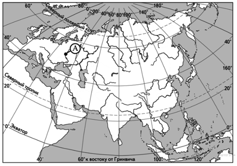 2).Какие географические координаты имеет точка, обозначенная на карте Евразии буквой А?