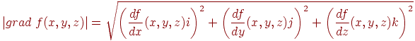 Рассмотрим функцию f считая для определенности, что она зависит от трех переменных х, у, z. Вычислим ее частные производные df/dx, df/dy, df/dz и образуем с их помощью вектора, который называют градиентом функции: