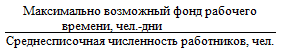 Рабочее время - это часть календарного времени, которое затрачивается на производство продукции и выполнение работ (услуг). Оно измеряется в человеко-днях и человеко-часах. Отработанный человеко-день - это явка на работу и факт того, что работник приступил к работе. Человеко-час работы - это один час работы одного работника. Методика анализа эффективности использования рабочего времени, рекомендованная в экономической литературе, основана на расчете календарного, табельного и максимально возможного фондов рабочего времени: - календарный фонд - это число человеко-дней месяца, квартала или года в расчете на одного работника или коллектив работников. Он рассчитывается как сумма человеко-дней явок, неявок и простоев; - табельный фонд - это число человеко-дней, отработанных работниками и учтенных в табеле учета рабочего времени. Он рассчитывается как разность между календарным фондом рабочего времени и суммой человеко-дней праздничных и выходных; - максимально возможный фонд - это максимально возможное время, которое может быть отработано работниками организации без учета праздничных, выходных дней, а также дней ежегодных отпусков. Он рассчитывается как разность между табельным фондом рабочего времени и суммой человеко-дней ежегодных отпусков. Методика расчета относительных и средних коэффициентов, характеризующих эффективность использования рабочего времени, представлена в табл.. Таблица Относительные и средние показатели использования рабочего времени