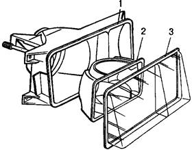 Рисунок 6 Элементы гомофокалной фары: 1 – корпус; 2 – отражатель; 3 – рассеиватель.
