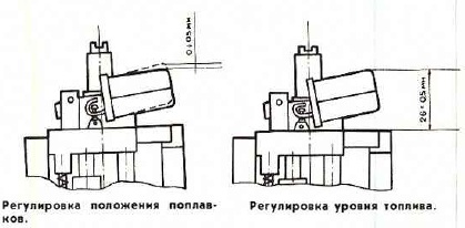 РЕГУЛИРОВКА КАРБЮРТОРА К62 Базовый карбюратор К-62 на многих отечественных мотоциклов. По замыслу его создателей этот прибор должен был существенно улучшить как пусковые, так и эксплуатационные показатели мото транспортных средств. На практике, к сожалению вышло не так. Нареканий на работу этих карбюраторов гораздо больше, чем на все им предшествовавшие. И добро бы речь шла о том, что не обеспечивается обещанная экономичность или приемистость. Мотоцикл порой просто вообще не идет. Для начала вспомним, что при полностью закрытой дроссельной заслонке и при очень малом ее подъеме (20 – 30 %), работает только система холостого хода (ХХ) карбюратора. На средних оборотах и при положении дросселя от 1/3 до ¾ хода, работают распылитель и дозирующая игла. На последней четверти хода дросселя фактически только главный топливный жиклер как то влияет на процессы. Если карбюратор новый, проверьте, хорошо ли он промыт. Иногда сгусток консервирующей смазки может таить в себе остатки стружки или литья, закупоривать тонкие каналы. Значит его надо промыть и продуть сухим воздухом. Затем следует убедиться, что карбюратор ПЛОТНО закрепляется на патрубке цилиндра, а патрубок, в свою очередь, герметично связан с цилиндром. Если этого не сделать, подсос воздуха по стыкам сведет на нет все ваши ухищрения и внесет такие коррективы в состав смеси, которые ничем не учесть и не исправить. Прокладка между коллектором и цилиндром, ни в коем случае не должна выступать внутрь!! – это может создать заметное препятствие на пути смехи и ухудшить наполнение цилиндра. Для изготовления прокладок применяют, плотный картон или паронит. Хотя иногда мотоциклисты используют и толстую относительно мягкую бензостойкую резину, мотивируя свой выбор желанием несколько уменьшить вибрации, передающиеся от цилиндра на карбюратор. Определенный резон в этом есть. После того, как хлопоты первичного порядка останутся позади, можно переходить собственно к регулировке. Она начинается с проверки и установки уровня топлива. НАЧАЛО РЕГУЛИРОВКИ Карбюратор нужно снять, отсоединить донышко поплавковой камеры и, перевернув карбюратор, проверить, находятся ли поплавки (их два) в одной плоскости. Если это не так, нужно подогнуть основание одного из поплавков. Может быть, его придется немного нагреть в кипятке. Расхождение между положениями поплавков не должно превышать 0, 5 мм. Расстояние от плоскости разъема корпуса до самой удаленной верхней части поплавка должно составлять 26+ - 0, 5 мм. Оно регулируется подгибанием язычка поплавка. Это и есть установка уровня топлива – только произведена она в нашем случае так называемым сухим способом. Отметим, что сказанное верно для равнинной местности, высота которой над уровнем моря не превышает 1 000 м. На высоте, вдвое большей, контрольная величина составляет уже 28 мм.