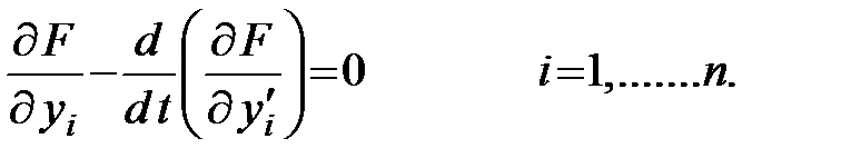 В том случае, когда y(t) – n – мерный вектор достаточно гладких функций, искомая экстремаль удовлетворяет системе уравнений Эйлера