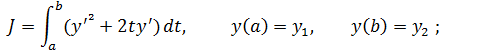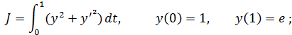 (проходящих через точки , найти такую, которая доставляет минимум функционалу