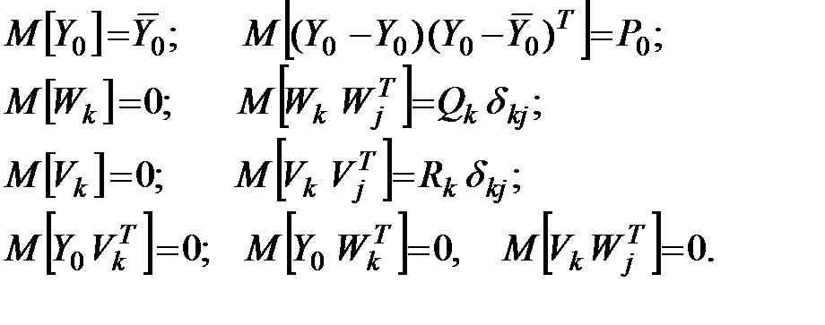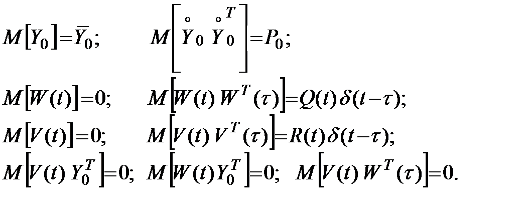 Относительно свойств случайных процессов и начального состояния будет предполагать, что они удовлетворяют условиям (5.28), т.е. будет предполагать, что это случайные процессы типа белого шума, не коррелированные друг с другом и начальным состоянием системы.