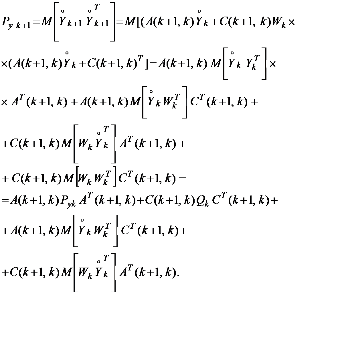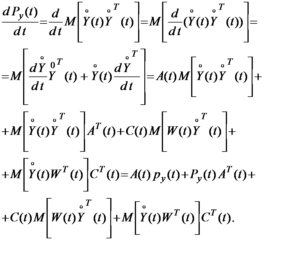 Теперь найдем уравнение для дисперсионной матрицы . Дифференцируя по матрицу и учитывая, что матрицы и не случайные, получим: