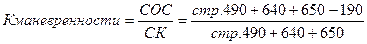 где СОС – собственные оборотные средства, ОА – оборотные средства. Рекомендуемое значение от 0, 1 до 0, 5 и выше. 4. Коэффициент маневренности собственных оборотных средств (Кманевренности) х арактеризует долю собственного капитала, инвестированного в оборотные активы, в общей сумме собственного капитала корпорации.