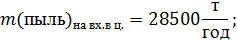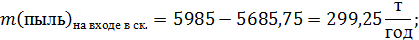 Массы веществ после очистки: 1) Масса пыли на входе в циклон: