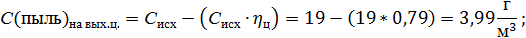 Концентрация пыли на выходе из циклона: