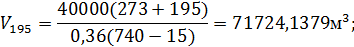 Объем газа при t = 195 º С: