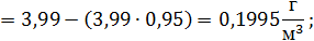 где Сост.вещества – остаточная концентрация вещества после очистки, г/м3, которую найдем по формуле: