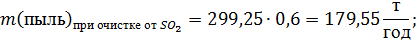 Масса уловленной пыли при очистке от диоксида серы: