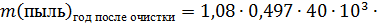 Фактический годовой выброс пыли после очистки: