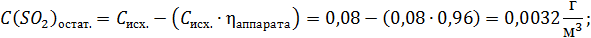 2) После очистки от диоксида серы остаточная концентрация равна: