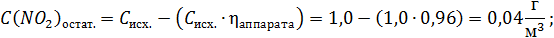 3) После очистки от диоксида азота остаточная концентрация равна: