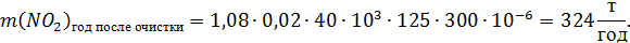 Фактический годовой выброс диоксида азота после очистки: