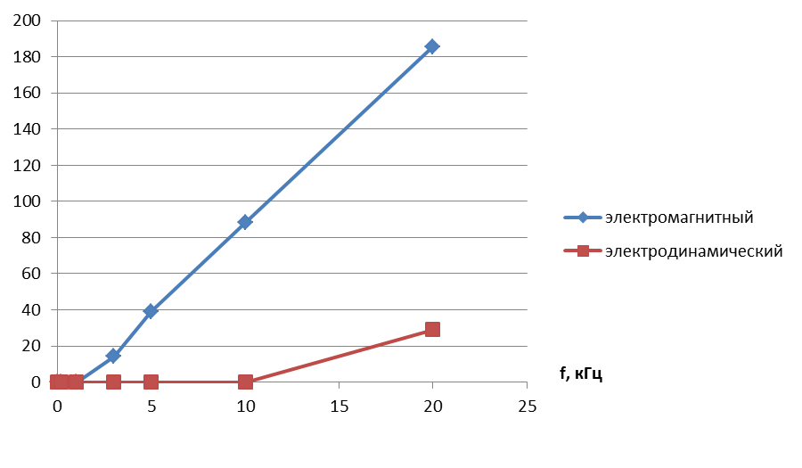 Вывод: в результате проведения лабораторной работы мы сравнивали различные типы вольтметров. При сравнении электромагнитного и электродинамического вольтметров выяснили, что с ростом частоты систематическая погрешность возрастает. Погрешность электродинамического вольтметра оказалась намного меньше, т.к. у него более широкий рабочий диапазон частот. А также он точнее (класс точности электродинамического вольтметра - 1, 5, у электромагнитного - 2, 0). При измерении параметров синусоидального сигнала оказалось, что показания пикового вольтметра выше показаний вольтметров средневыпрямленного и среднеквадратического значений. Это объясняется тем, что мы устанавливали напряжение по вольтметру с пиковым преобразователем, но его шкала проградурованна в средневыпрямленных значениях. А средневыпрямленный и среднеквадратический вольтметры проградурованны в среднеквадратических значениях.