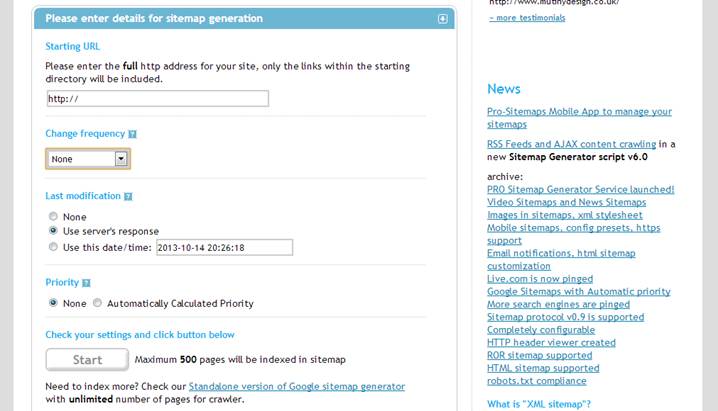 Рисунок 39 – Генератор XML-карты сайта (https://www.xml-sitemaps.com/)