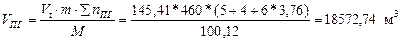 Расчёт объёма компонентов продуктов горения проводится по формулам: