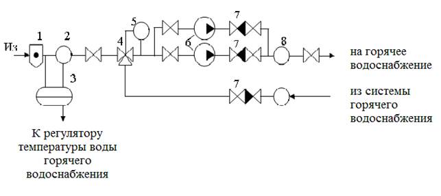 Рисунок 1.1 - Схема теплового пункта с непосредственным водозабором на горячее водоснабжение