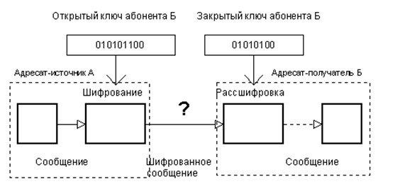 Это такие системы, в которых каждый символ открытого текста преобразуется в символ шифрованного текста в зависимости не только от используемого ключа, но и от его расположения в потоке открытого текста. Системы потокового шифрования близки к криптосистемам с одноразовым ключом, в которых размер ключа равен размеру шифруемого текста. Преимущества: · Не происходит размножения ошибок, возникающие в процессе передачи сообщения по каналу связи. · Высокая скорость Недостатки: · Необходимость передачи информации синхронизации перед заголовком сообщения, которая должна быть принята до расшифрования любого сообщения. Это связано с тем, что если два различных сообщения шифруются на одном и том же ключе, то для расшифрования этих сообщений должна использоваться одна и та же псевдослучайная последовательность. Такое положение может создать опасную угрозу криптостойкости системы и поэтому часто используется дополнительный, случайно выбираемый ключ сообщения, который передается в начале сообщения и используется для модификации ключа шифрования. В результате разные сообщения будут шифроваться с использованием различных последовательностей. Достоинтсва: 1. бесперспективность силовой атаки XSL-атаки в учёт не берутся, так как их эффективность на данный момент полностью не доказана); 2. эффективность реализации и соответственно высокое быстродействие на современных компьютерах. 3. наличие защиты от навязывания ложных данных (выработка имитовставки) и одинаковый цикл шифрования во всех четырех алгоритмах ГОСТа. Основные проблемы: Основные проблемы ГОСТа связаны с неполнотой стандарта в части генерации ключей и таблиц замен. Тривиально доказывается, что у ГОСТа существуют «слабые» ключи и таблицы замен, но в стандарте не описываются критерии выбора и отсева «слабых». Также стандарт не специфицирует алгоритм генерации таблицы замен (S-блоков). С одной стороны, это может являться дополнительной секретной информацией (помимо ключа), а с другой, поднимает ряд проблем: · нельзя определить криптостойкость алгоритма, не зная заранее таблицы замен; · реализации алгоритма от различных производителей могут использовать разные таблицы замен и могут быть несовместимы между собой; · возможность преднамеренного предоставления слабых таблиц замен лицензирующими органами РФ; · потенциальная возможность (отсутствие запрета в стандарте) использования таблиц замены, в которых узлы не являются перестановками, что может привести к чрезвычайному снижению стойкости шифра. Возможные применения: · Использование в S/MIME (PKCS#7, Cryptographic Message Syntax). · Использование для защиты соединений в TLS (SSL, HTTPS, WEB). · Использование для защиты сообщений в XML Encryption. =3= В криптосистемах с открытым ключом в алгоритмах шифрования и дешифрования используются два ключа - один для шифрования, а другой для дешифрования. Первый ключ, необходимый для шифрования, предается открыто, с его помощью отправитель шифрует сообщение. Получатель, получив шифрограмму, дешифрирует её с помощью второго секретного ключа.Перехват открытого колюча ни коим образом не позволяет дешифровать сообщене, так как его можно прочитать только с помощью второго ключа. Общий принцип шифрования ассимметричной криптосистемы: