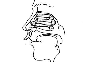Задняя тампонада. Если кровотечение продолжается следует выполнить заднюю тампонаду носа. Извлекают передний тампон и вводят катетер Фоллея в нижний носовой ход до тех пор пока его конец не достигнет носоглотки. Нагнетают в баллончик катетера 10 мл воздуха и подтягивают катетер на себя, чтобы баллон заблокировал задние хоаны. В случае отсутствия катетера можно использовать другую методику задней тампонады носа. В носовой ход вставляют резиновый катетер так, чтобы извлечь его конец через рот. К выведенному через рот концу катетера подвязывают прочную нить длинной 50 см, на противоположном конце которой подвязан марлевый тампон. Катетер вместе с нитью извлекают через нос так, чтобы марлевый тампон заблокировал задние хоаны.
