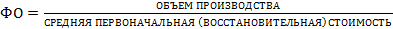 При расчете показателя учитываются собственные и арендованные ОС, не учитываются ОС, находящиеся на консервации и сданные в аренду. Показатель фондоотдачи анализируют в динамике за ряд лет, поэтому объем продукции корректируют на изменение цен и структурных сдвигов, а стоимость ОС - на коэффициент переоценки. Повышение фондоотдачи ведет к снижению суммы амортизационных отчислений, приходящихся на один рубль готовой продукции или амортизационной емкости. Рост фондоотдачи является одним из факторов интенсивного роста объема выпуска продукции (ВП). Эту зависимость описывает факторная модель: