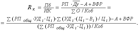 В зарубежных странах для обеспечения системного подхода при изучении факторов изменения прибыли и прогнозирования ее величины используют маржинальный анализ, в основе которого лежит маржинальный доход. Маржинальный доход (МД) – это прибыль в сумме с постоянными затратами (Зпост). МД = П + Зпост, откуда П = МД - Зпост. С помощью формулы можно рассчитать сумму прибыли, если известны величины маржинального дохода и постоянных затрат. Очень часто при определении суммы прибыли вместо маржинального дохода используется выручка (РП) и удельный вес маржинального дохода в ней (Ду). Поскольку Данная формула успешно применяется тогда, когда необходимо проанализировать прибыль от реализации нескольких видов продукции. При анализе прибыли от реализации одного вида продукции можно применять модифицированную формулу определения прибыли, если известно количество проданной продукции и ставка маржинального дохода (Дс) в цене за единицу продукции: где В - переменные затраты за единицу продукции. Последняя формула позволяет определить изменение суммы прибыли за счет количества реализованной продукции, цены и уровня переменных и постоянных затрат. Методика анализа прибыли несколько усложняется в условиях многономенклатурного производства, когда кроме перечисленных факторов необходимо учитывать и влияние структуры реализованной продукции. В зарубежных странах для изучения влияния факторов на изменение суммы прибыли при многономенклатурном производстве используется модель. Средняя доля маржинального дохода в выручке ( После этого факторная модель прибыли от реализации продукции будет иметь вид Она позволяет установить изменение прибыли за счет количества (объема) реализованной продукции, ее структуры, отпускных цен, удельных переменных издержек и постоянных расходов предприятия. Методика анализа рентабельности по системе «директ-кост» будет осуществляться с использованием следующей факторной модели Для анализа рентабельности издержек в целом по предприятию используем следующую факторную модель: Последовательно заменяя плановый (базисный) уровень каждого факторного показателя на фактический и сравнивая результат расчета до и после замены каждого фактора, можно определить изменение уровня рентабельности за счет объема реализованной продукции РПобщ, ее структуры (УДi), цены (Ц), удельных переменных расходов (В) и суммы постоянных затрат (А). Аналогичным образом производится анализ рентабельности продаж (предпринимательской деятельности): Анализ рентабельности инвестированного капитала производится по следующей факторной модели: где Пб – балансовая сумма прибыли; ИК – среднегодовая сумма инвестиционного капитала; Аналогичным образом производится анализ рентабельности и в том случае, если коэффициент оборачиваемости капитала рассчитан не по дебетовому, а по кредитовому обороту сч.46, т.е. по выручке. Тогда факторная модель рентабельности инвестиционного капитала будет иметь вид Преимущество рассмотренной методики анализа показателей прибыли рентабельности состоит в том, что при ее использовании учитывается взаимосвязь элементов модели, в частности объема продаж, издержек и прибыли. Это обеспечивает более точное исчисление влияния факторов и, как следствие, более высокий уровень планирования и прогнозирования ф