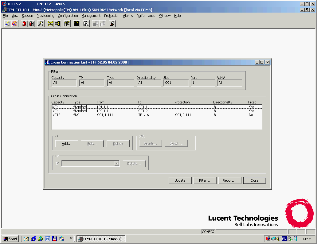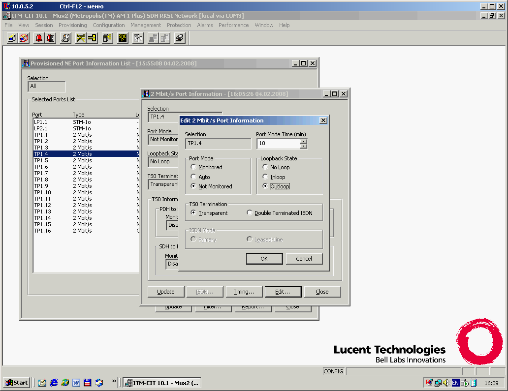 2 Перечень используемого оборудования: 2.1 Персональный компьютер с установленным ПО ITM-CIT 10.1 2.2 Мультиплексор Lucent WaveStar AM 1 Plus 2.3 Тестер интерфейсных сигналов ТИС-Е1 2.4 Анализатор Беркут-Е1