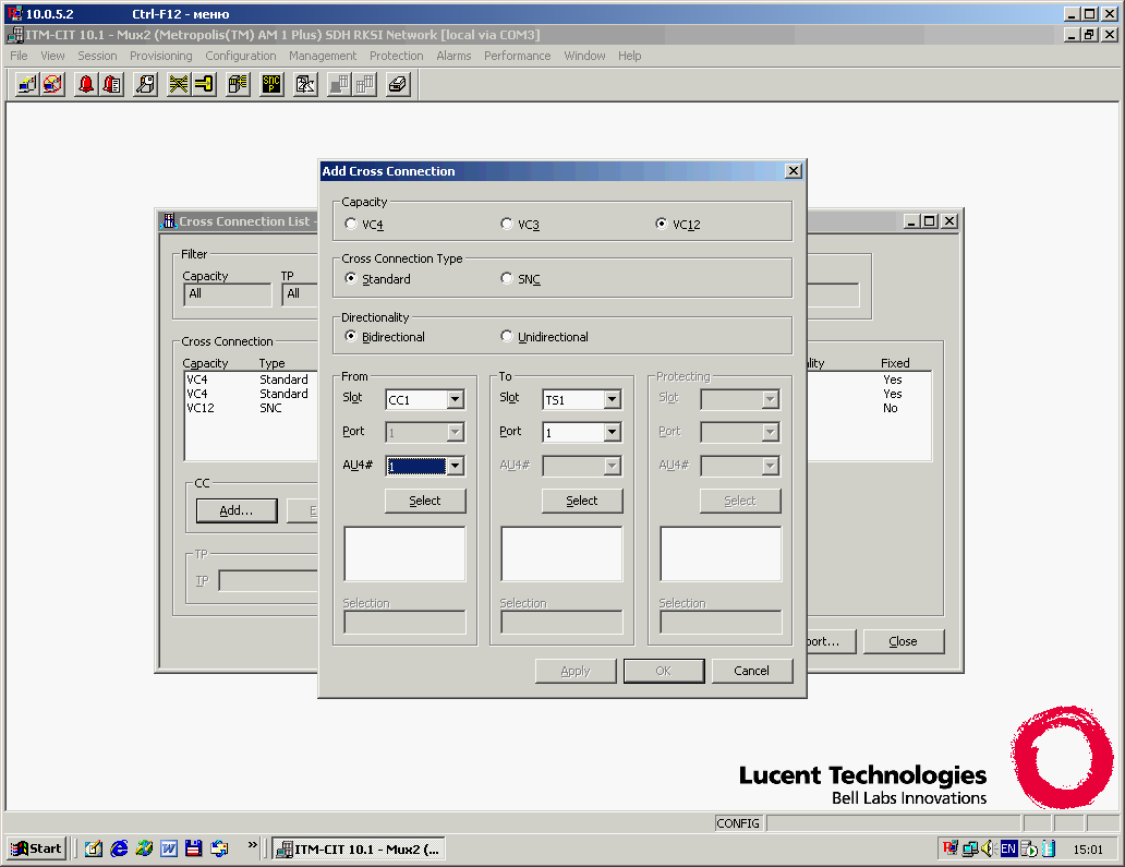 Рисунок 7 - Окно Cross Connection Selection List 4 Выберите Add в поле CC. Появляется окно Add Cross Connection, представленное на рисунке 8