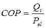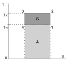 Площа прямокутника А являє собою енергію взяту з навколишнього середовища, площа прямокутника B – Конструкція теплових насосів Внутрішній контур теплових насосів складається з конденсатору, розширювального клапану, випарника, компресора (у компресорних ТН) та терморегулятора, який управляє процесом передачі теплової енергії. В якості робочої рідини, за допомогою якої власне і відбувається теплопередача, служить холодоагент, що циркулює в системі. Це рідина із певними фізичними властивостями і характеристиками. Холодоагент під високим тиском через розширювальний клапан (капіляр) попадає у випарник, де за рахунок різкого зменшення тиску відбувається процес випаровування. При цьому холодоагент відбирає тепло у внутрішніх стінок випарника, а випарник у свою чергу віднімає тепло в грунтового або водяного контуру. За рахунок чого і отримується додаткова (безкоштовна) теплова енергія. Компресор вбирає холодоагент із випарника, стискає його, за рахунок чого температура холодоагенту ще більше підвищується, й виштовхує його в конденсатор. У конденсаторі, нагрітий у результаті стискування холодоагент віддає тепло (температура порядку 85-125 оС) опалювальному контуру й переходить у рідкий стан (конденсується). Цикл повторюється постійно поки температура в опалювальному контурі будинку не досягне необхідної. Тоді терморегулятор вимикає ТН. Коли температура в опалювальному контурі падає, терморегулятор знову запускає тепловий насос. У такий спосіб холодоагент у тепловому насосі робить зворотний цикл Карно. В якості основного показника ефективності теплового насоса застосовується коефіцієнт перетворення або опалювальний коефіцієнт СОР (coefficient of performance), що дорівнює відношенню теплової енергії виробленої ТН до споживаної ним електричної потужності. У режимі охолодження для оцінки ефективності застосовується холодильний коефіцієнт EER (energy efficiency ratio), рівний відношенню продуктивності виробництва холоду ТН до споживаної потужності. Ці коефіцієнти дорівнюють: