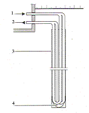 Вибір зовнішнього джерела енергії. Джерелом тепла вхідного контуру для теплового насосу може бути: ґрунт, вода, повітря та інше (стічні води тощо). У 2010 році процентне співвідношення нижніх джерел теплопостачання у теплових насосах було таким: грунт - 59%, вода - 15%, повітря - 26%. Рис. 2.10. Тепловий насос с грунтовим зондом а – загальна схема, б – схема грунтового зонда 1 – зворотна магістраль, 2 – подаюча магистраль, 3 – ґрунтовий зонд, 4 – захисний ковпачок