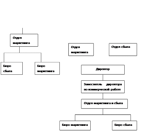 Этот тип структуры используется при следующих условиях: ü выпуск ограниченного количества относительно однородных товаров; ü наличие разветвлённой сбытовой сети с большим числом торговых точек; ü высокая концентрация предприятий в пределах каждого региона; ü различие в требованиях к товару и обслуживанию потребителей, находящихся в различных регионах. Комбинированный тип организационной структуры используется предприятиями, активно расширяющими производственную и торговую деятельность. Этот тип орг.структуры является более гибким и имеет высокую готовность к новым требованиям расширения номенклатуры производимой продукции, к появлению новых рынков, к новым требованиям покупателей. На практике применяются различные комбинации структур организации сбыта, например функционально-товарная, регионально-функциональная и др. Варианты организации маркетинговых и сбытовых подразделений предприятия