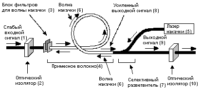 (Усиление большого числа каналов в широкой области длин волн одновременно) Этот тип оптического усилителя наиболее широко распространен и является ключевым элементом в технологии полностью оптических сетей, поскольку он позволяет усиливать сигнал в широком спектральном диапазоне.