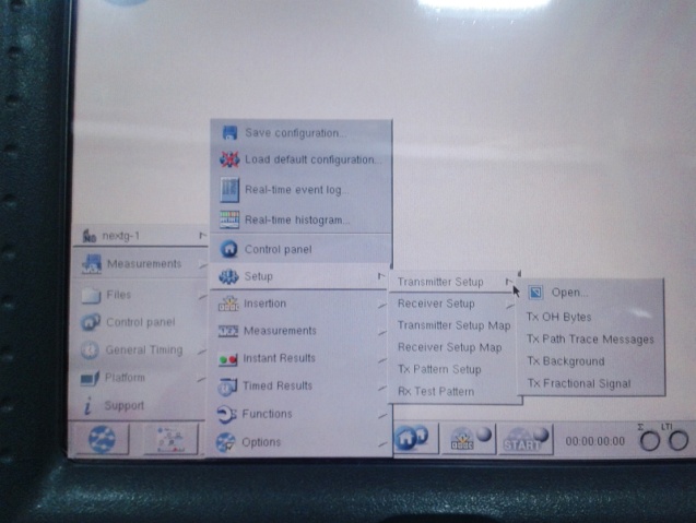 1. В меню Setup (настройка) надо выбрать Transmitter Setup, затем Open (открыть). Отобразится окно Transmitter Setup. 2. Прежде всего, надо выбрать соответствующую опцию сети Network (SDH/ SONET/PDH/T-CAR/G. 832). 3. Затем следует выбрать режим работы (Mode), который будет использоваться. Это может быть Terminated (оконечный генератор/анализатор) или Transparent (режим сквозной передачи). 4. Установка Reference Clock Source (источник эталонного тактового сигнала) на Mainframe (базовый) Выбирается скорость передачи линейного сигнала передатчика (Rate) -от STM-0/OC-1 до STM-16/OC-48. 5. Затем выбирается код (Code) для электрических соединений или длину волны (Wavelength 1550 или 1310 нм) для оптических соединений. 6. Установка конкретной структуры Mapping (размещение), которая подходит для тестируемой сети.
