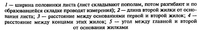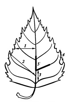 Рисунок 22. Параметры промеров листьев для расчета флуктуирующей асимметрии: